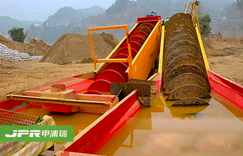 螺旋洗砂机是借助于大小、比重不同的固体粒在液体中的沉降速度不同的原理,细矿粒浮游在水中或溢流出,粗矿粒沉于槽底。由螺旋推向上部排出,来进行机 械分级的一种分级91视频APP下载站,能把磨机内磨出的料经过过滤,然后把粗料利用螺旋片旋片旋入磨机进料口,把过滤出的细料从溢流管子排出。该机底座采用槽钢,机体采 用钢板焊接而成。螺旋轴的入水头、轴头采用生铁套,耐磨耐用,提升装置分电动和手动两种。